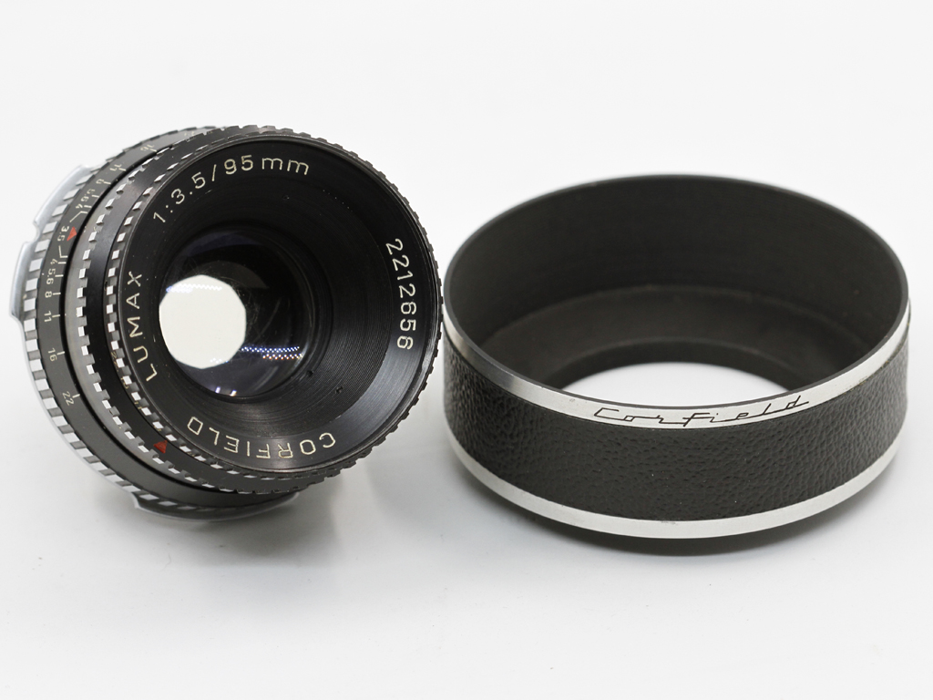 If the above slow method of working has not put you off we move to the main limiting factor of this camera, the lens, the only lens. It is fair to say that at the point of design additional lenses other than the 95mm f3.5 Lumax were sure to have been envisaged, after all the 66 was designed to be modular. Alas only the one standard lens was designed and made by Enna Munchen, no wideangles and no telephotos were forthcoming. It is also odd that the 95mm focal length was chosen for a 6×6 format camera, as this focal length is often the preserve of the 6×7 format, a 75mm or 80mm would normally be expected. The Lumax itself is nicely made and again follows the black and silver Zebra anodising, which by then was the house style and copied by many other manufacturers. The mount as noted is a proprietary breech lock of large diameter and no other camera utilised it. Focussing is achieved by a single helical thread down to a minimum distance of 4ft. The aperture setting ring is conveniently situated at the front of the lens, but as the whole front barrel rotates when focussed due to the single helical, two sets of aperture engravings are therefore present to ensure that at least some of the information is still seen by the photographer as the rest disappears from view. The aperture range is nicely click stopped though from f3.5 to f22 and is formed by a 10 blade manual iris, not even a pre set option here. Again in action this slows down the use of the camera as viewing and composition are performed at full aperture before the lens is manually stopped down for the final exposure, whilst hoping that you didn’t shift focus at the same time. Annoyingly for an OCD pedant like me, the maximum aperture setting does not align with the red focus point triangle when the lens is at infinity and only does so when set at 20 feet.